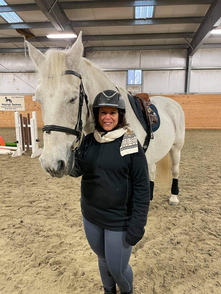Today, before my lesson, I had the privilege of watching my trainer Kari ride Martini. “Tune up” rides is what she calls it. Martini is a school horse so he is used to working at the levels of the students who ride him. When my trainer got on him, all she could say was “he doesn’t want to move.” After a few minutes Martini realized that his owner was on him and it was time to work. They walked, trotted and cantered perfect circles, and I saw Martini get into that nice amazing dressage frame where he was rounding his body. It was such a joy to see both my trainer Kari and Martini enjoying themselves. It was now my time to ride.
