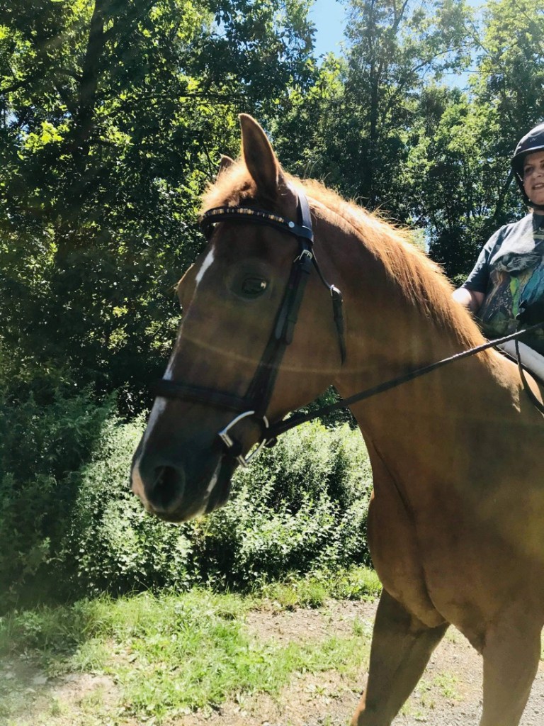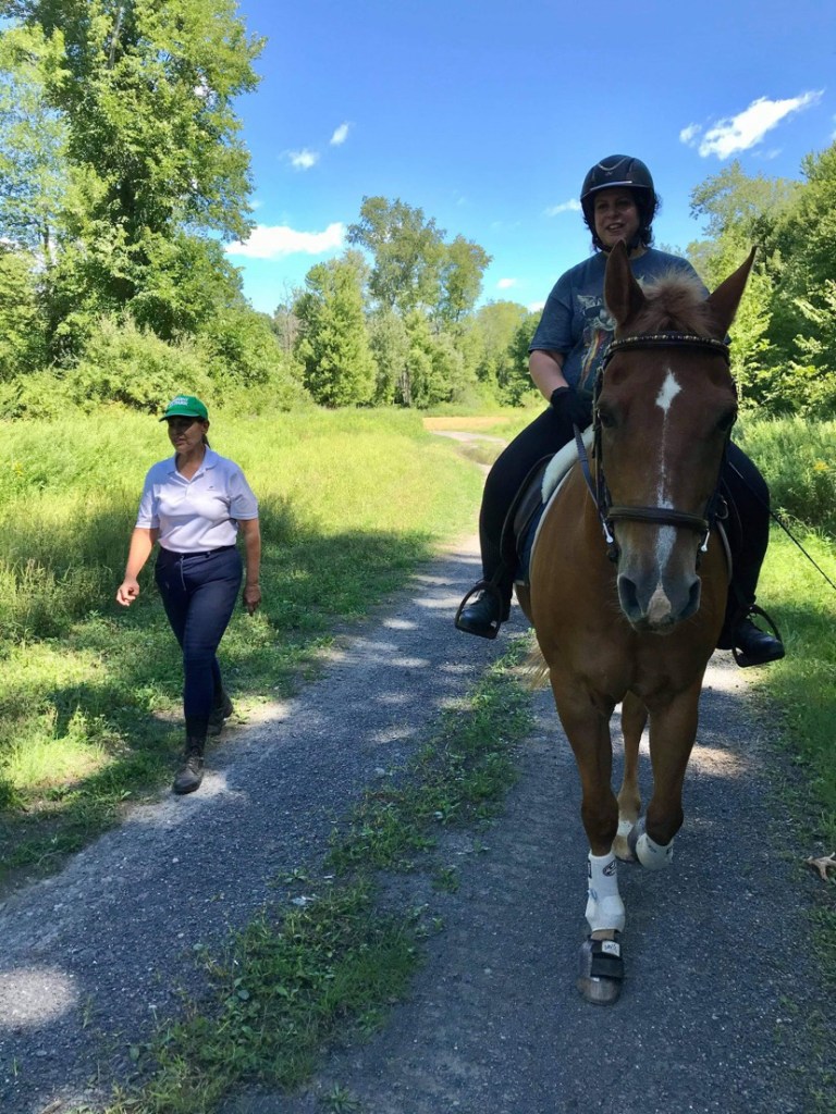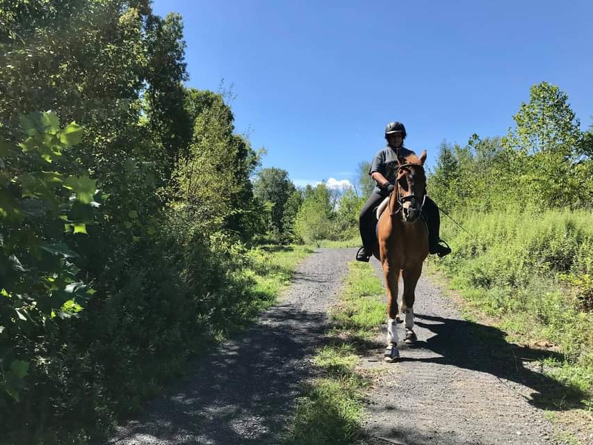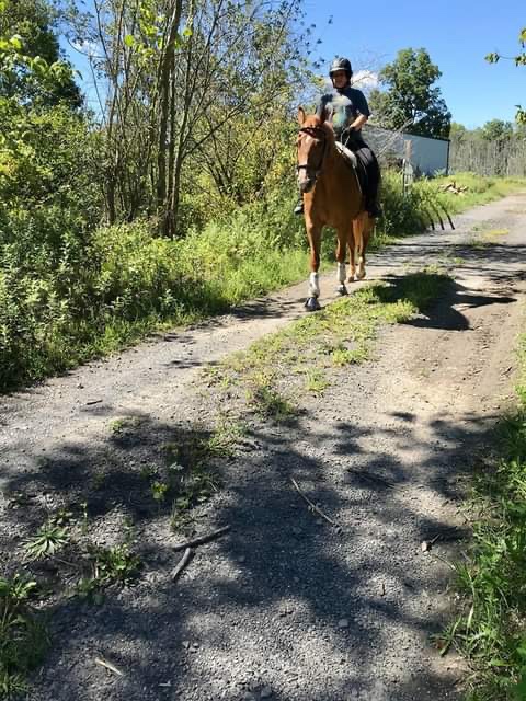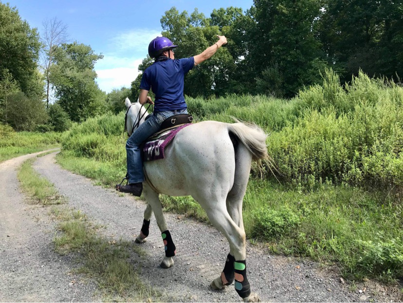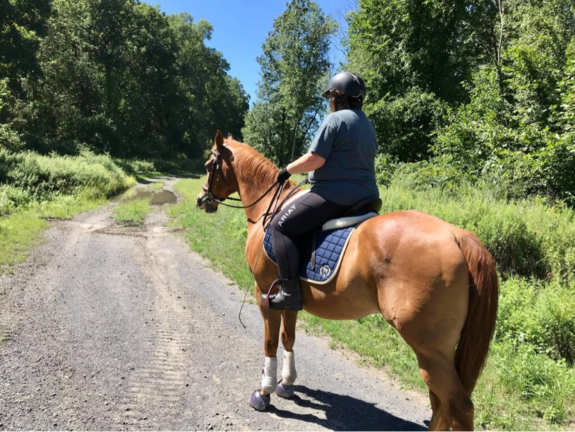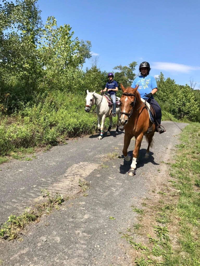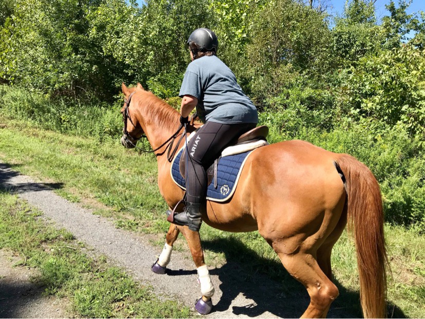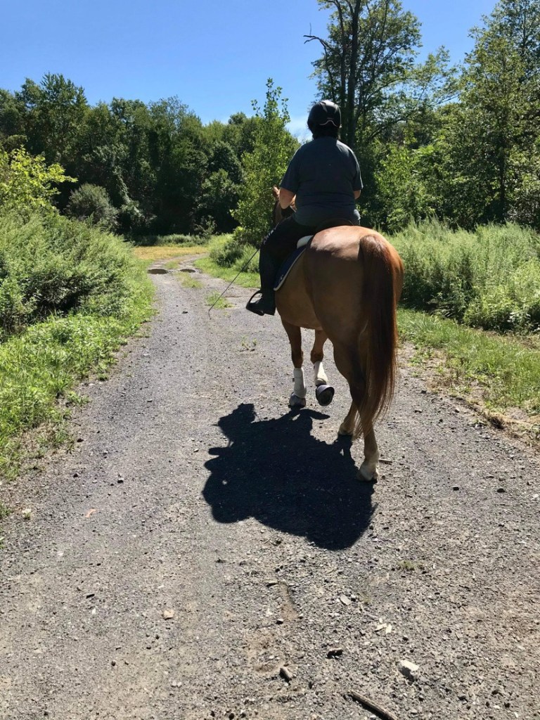 I’ve gotten used to Sunday’s with Alfie being our “fun day.” Today we had the amazing pleasure of my best gal Heidi riding her horse Cayman. It was only the 2nd time she’s ridden him on the trails and a first time going with Alfie. Our pedestrian chaperones were barn manager Regina and her wife Jenna.