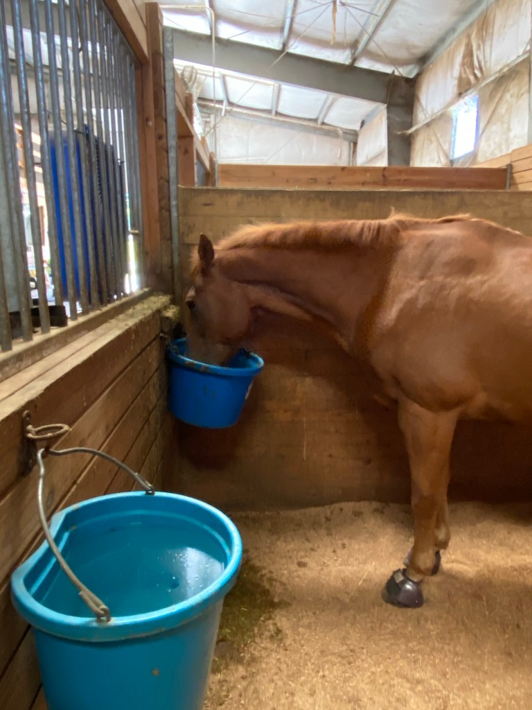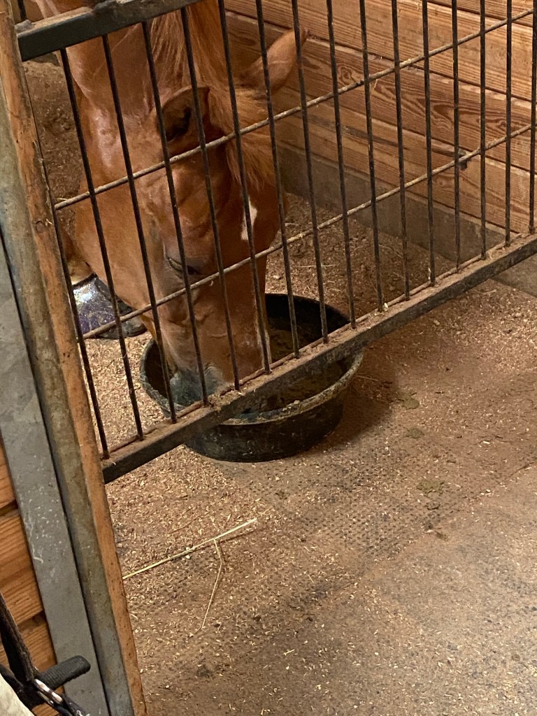 I get Martini untacked and give him some cookies. He is excited to get into his stall as it’s almost dinner time.