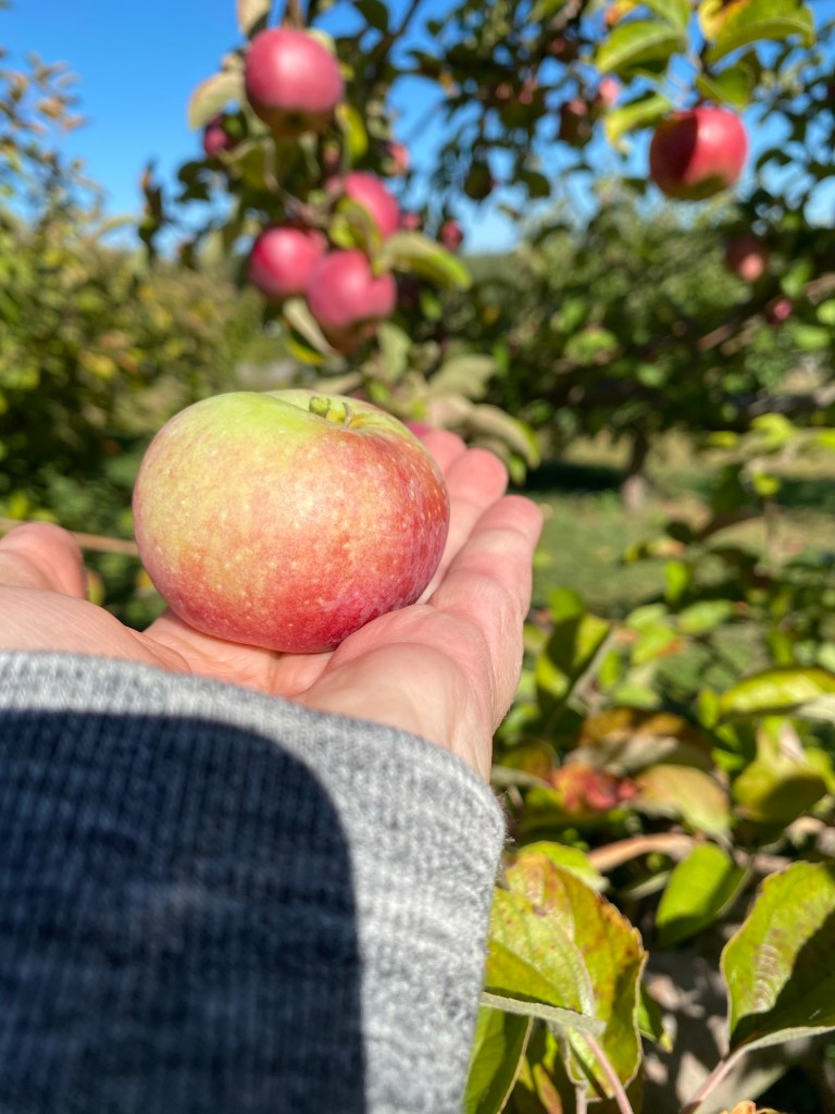 Fall has arrived. Yesterday, my husband and I went apple picking, it’s a yearly tradition that we both enjoy. We each get a bag to fill. My husband picks apples for baking, and I pick apples for Alfie. Yes, you read that right, I pick an entire bag of apples for Alfie.