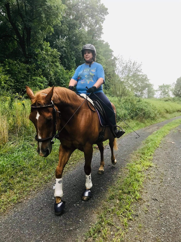 As I’m walking Alfie in from his field, I notice he has a spring in his step. He is moving beautifully. Yesterday after Alfie’s challenging ride with my trainer, I spoke with our barn manager Regina who agreed that the humidity was too much for him and that his arthritis was having a bad day. I asked her if she could ride him for me to see if she felt anything about him that was off or not right. She’s never ridden him before and was happy to oblige.