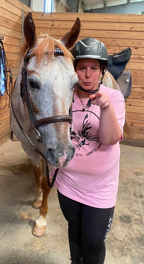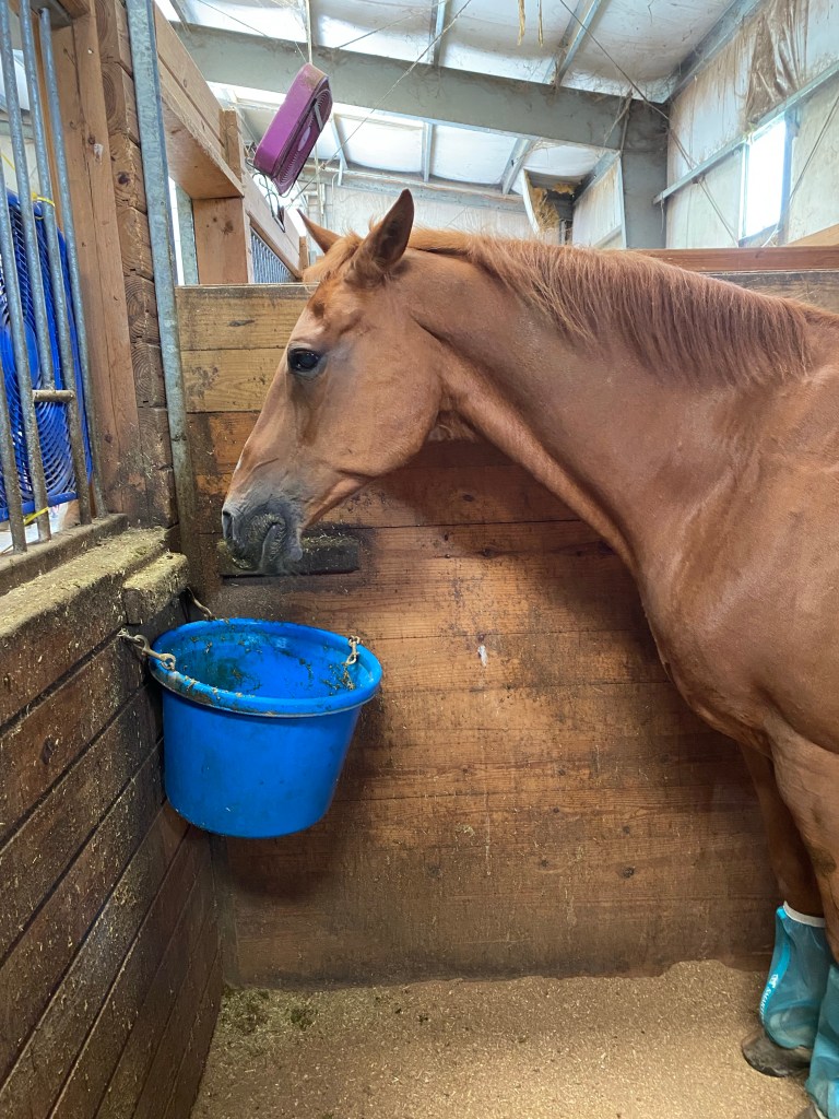 Within a matter of days, Copper stopped dragging his back foot, and he’s moving better every day. While the vet was here, I also had her take some blood so he could be tested for Lyme’s disease. When I purchased him, his former owner had told me he had been treated for Lyme’s in the past. Once horses have Lyme’s, it can flare up, just like it does in people. Well, Copper started to spook at very random things, cones, poles, jump standards, all things he sees all the time. Lyme’s can effect vision, can make arthritis worse and can make horses more edgy and paranoid in their behavior. So when his Lyme’s test came back positive – at a level that is considered “chronic” – he was started on the antibiotic immediately. He’s been on the medication 7 days, I rode him yesterday and could see a difference, he didn’t spook at all.🙏🏻